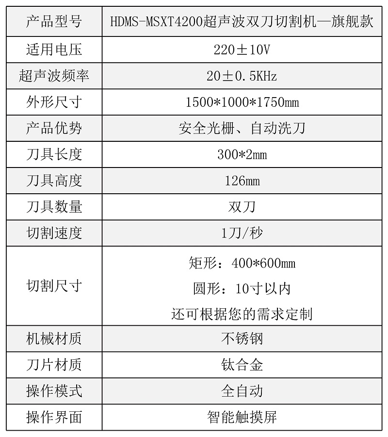 該設(shè)備配備雙把超聲波刀片,既可切方蛋糕,也可同時切兩個圓蛋糕,效率更高