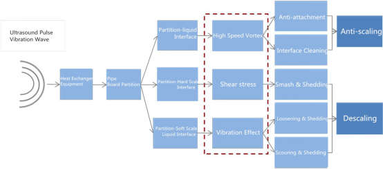 The ultrasonic descaling and anti-scaling equipment is mainly composed of an ultrasonic generator, an ultrasonic signal transmission cable, an ultrasonic energy converter and the pipeline which assembled with an ultrasonic transducer. According to the installation mode, it can be divided into three types: external type, embedded type and built-in type.